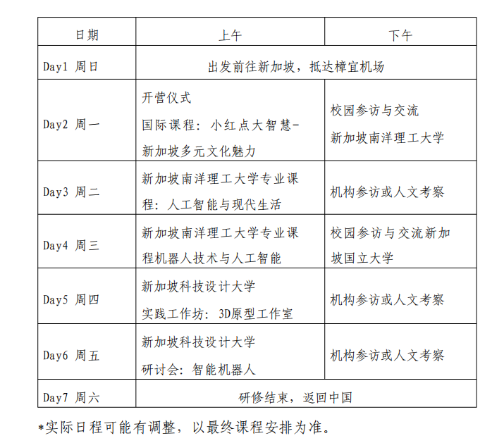 为了推进学生海外交流,扩宽学生国际视野,我校现启动由新加坡南洋理工大学和新加坡科技设计大学联合举办的寒假“新加坡AI未来菁英营”报名工作,具体通知如下: